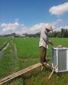 Dưới đây là một số hình ảnh lấy mẫu khí trên ruộng lúa